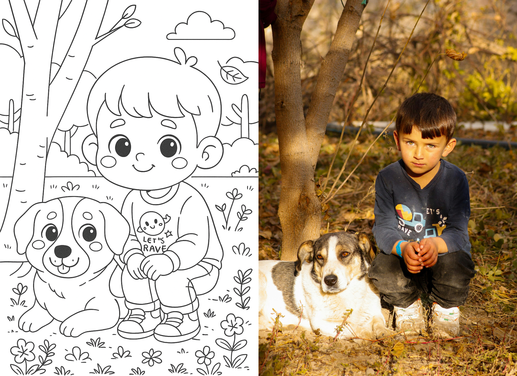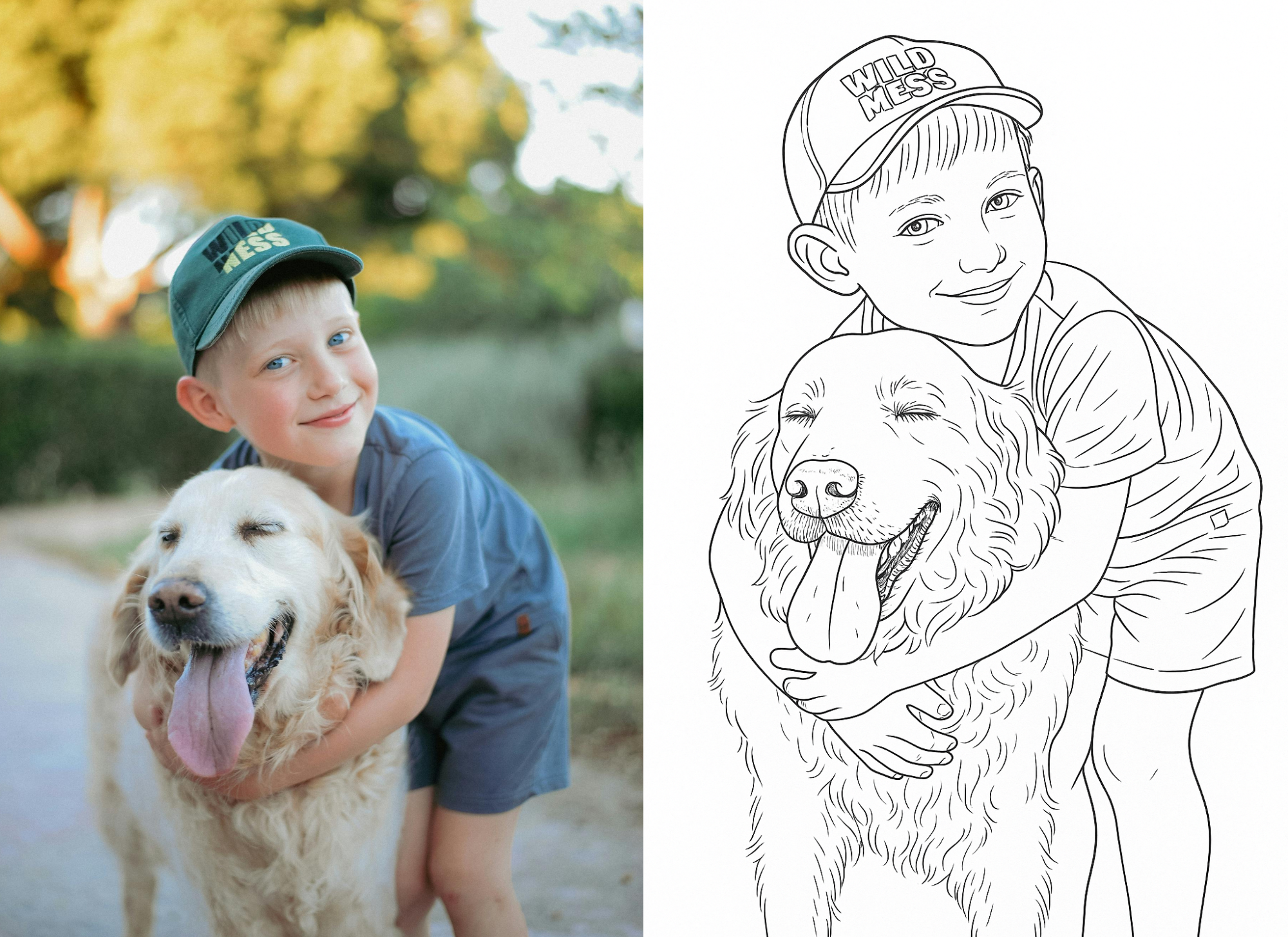 Your photo is transformed into a custom hand-drawn coloring page.