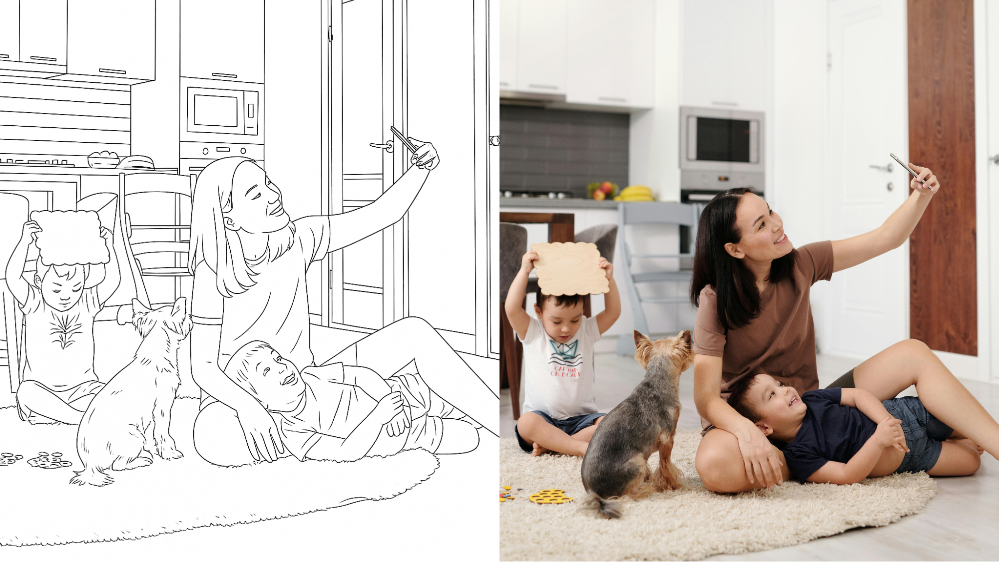 At MemoriesToColor, we believe your favorite moments deserve to be relived in the sweetest, most creative way. Our custom coloring books are made entirely from your own photos, each one thoughtfully transformed into a clean, easy-to-color illustration that keeps the heart of the memory intact. Every page feels familiar and personal, turning the people and places you love into something calming, nostalgic, and truly one of a kind.